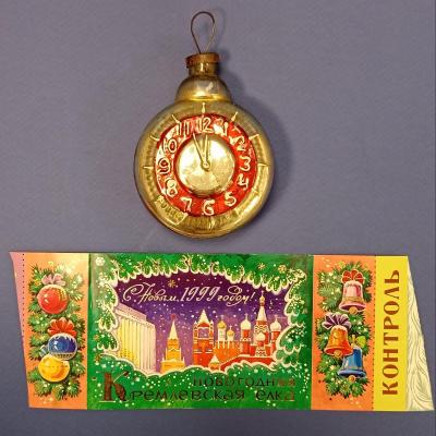 Фото: Ёлочная игрушка для украшения общественных ёлок. Из коллекции Ирины Аркадьевой. Приглашение на кремлёвскую новогоднюю ёлку 1999 гг. Архив Президентского центра Б. Н. Ельцина
