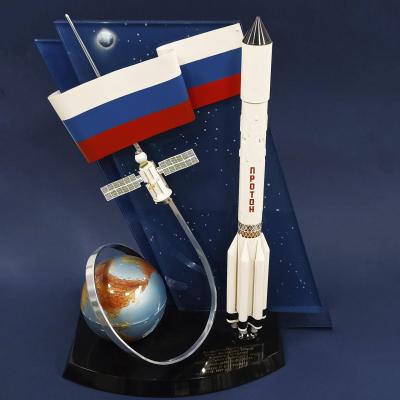 В память о встрече сотрудники ГКНЦП подарили президенту макет ракеты-носителя «Протон», выводящей на орбиту Земли станцию «Мир».
