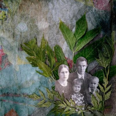 Для создания работы подойдут фотографии из семейного архива, газетные вырезки, ткани и небольшие дорогие сердцу предметы.