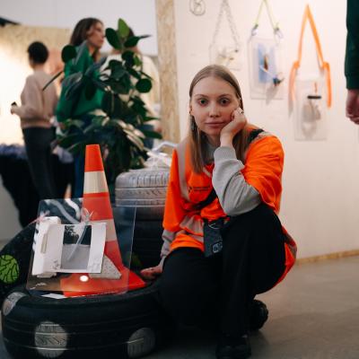 Катя Червонных — междисциплинарная художница, работает с темами памяти и наследия, взаимодействия человека и города. Цель ее практики — фокусировка внимания и создание точек привязки вокруг обыденных вещей, которые ускользают от человека в его текущем темпе жизни. В работах использует различные медиумы: от уличных рекламных баннеров и 3D-сканирования до графики и ниток.