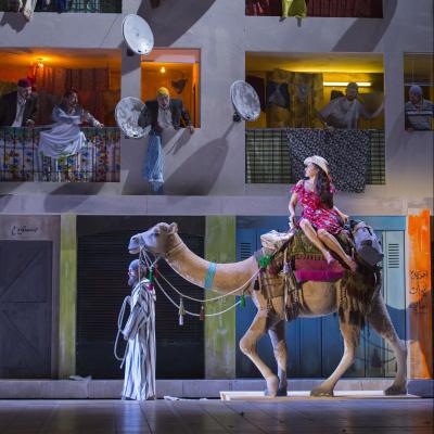 По крайней мере, именно такой – веселой, острой, реалистичной и актуальной сатирой – поставили «Итальянку в Алжире» известные режиссеры, всегда работающие в тандеме: Моше Лейзер и Патрис Курье. Действие происходит в современном Алжире, где пузатый «бей» Мустафа ездит на ободранном старом мерседесе, а итальянская «туристка» Изабелла поет свою виртуозную входную арию, сидя на бутафорском верблюде. «Хор евнухов» превратился в типичных восточных бичей в тренировочных костюмах, а «итальянские рабы» - это футбольная команда, поедающая пасту под патриотические призывы Изабеллы о возвращении на родину. Получился одновременно веселый и содержательный разговор на темы конфликта полов и цивилизаций.