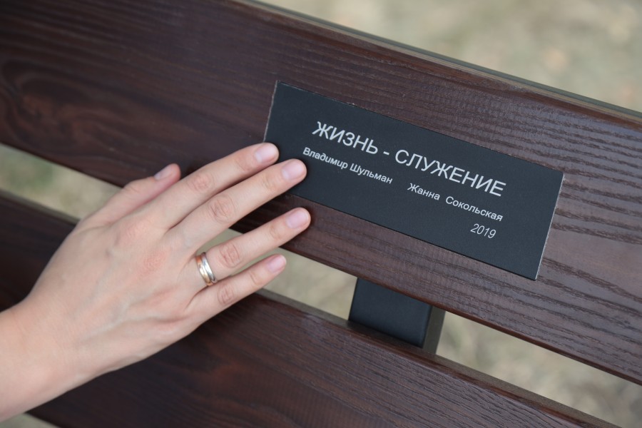 Именная скамейка в память о Владимире Шульмане и Жанне Сокольской