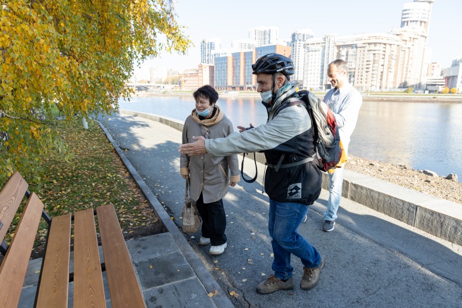 В начале октября набережную Исети рядом с Ельцин Центром украсили сразу четыре новые именные скамейки, установленные горожанами. Большинство из них — подарок родителям.