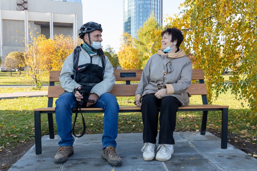 Аркадий Афанасьевич и Лилия Борисовна Лившиц. Рядом с Ельцин Центром — новые именные скамейки
