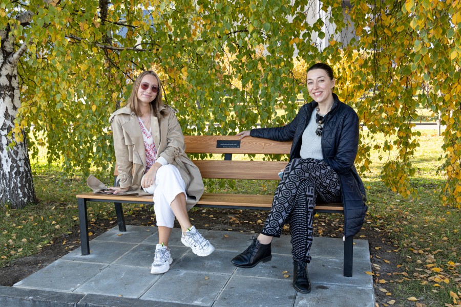 В начале октября набережную Исети рядом с Ельцин Центром украсили сразу четыре новые именные скамейки, установленные горожанами. Большинство из них — подарок родителям.