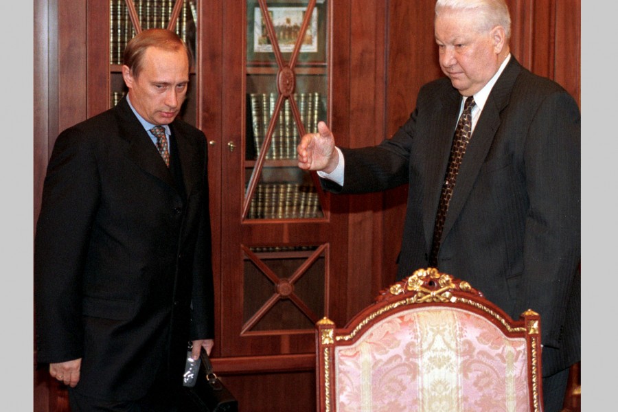 Москва.22 февраля. В Кремле сегодня состоялась плановая встреча Президента России Бориса Ельцина (справа) с директором Федеральной службы безопасности Владимиром Путиным (слева). Владимир Путин представил Борису Ельцину отчет о деятельности его ведомства за прошлый год. Директор ФСБ также доложил президенту РФ о ходе работы по конкретным оперативным делам, ведущимся Службой. Владимир Путин информировал главу государства о всех структурных изменениях в ФСБ, производимых в соответствии с указом Президента РФ. Борис Ельцин одобрил результаты оперативной деятельности, проводящейся ФСБ, особо отметив при этом эффективность работы Владимира Путина на посту директора ФСБ. Фото Александра Чумичева и Александра Сенцова (ИТАР-ТАСС)
