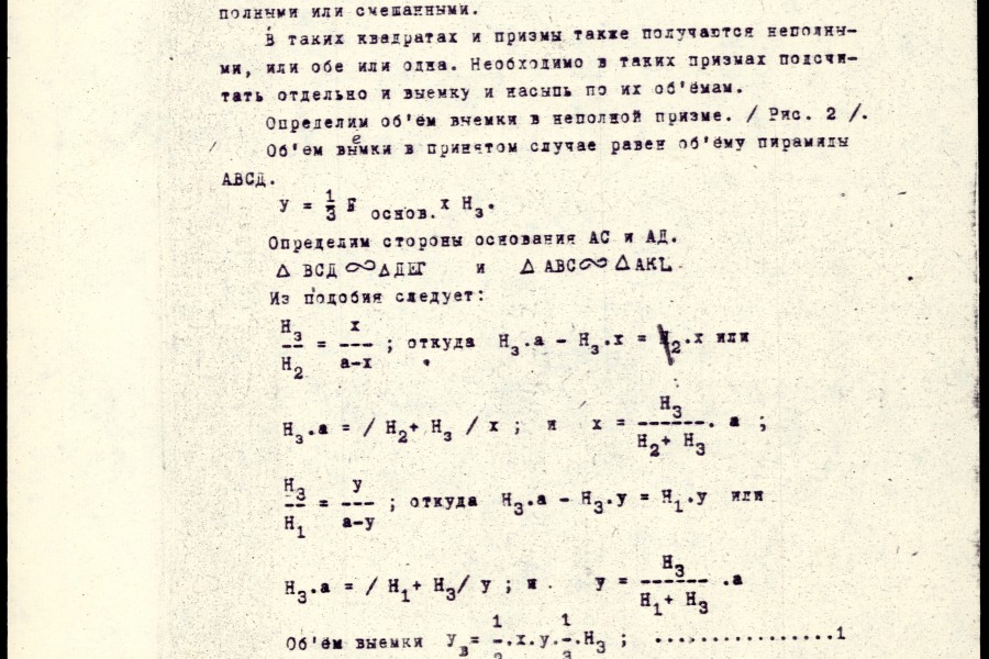 Работа студента группы С-376 Б. Ельцина «Вывод формулы для планировочной отметки…», члена кружка Студенческого научного общества при кафедре строительного производства Уральского политехнического института им. С.М. Кирова. [1953].