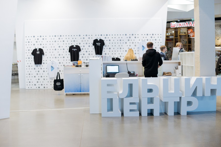 Магазин сувениров Ельцин Центра открылся в зале вылетов екатеринбургского аэропорта «Кольцово». Расположен он напротив выхода на посадку №14, и его можно легко найти по огромному бело-синему баннеру с репродукцией картины Эрика Булатова «Свобода» — такой же, как в зале Свободы музея Бориса Ельцина. Как и аэропорт «Кольцово», магазин работает для вылетающих пассажиров круглосуточно.