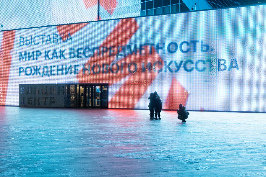 Фасад Ельцин Центра. Выставка "Мир как беспредметность" Медиафасад