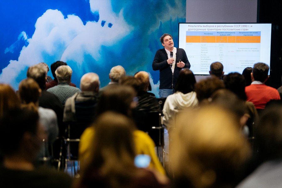 Разговором о «Прекрасной России будущего» с политологом, филологом и журналистом Кириллом Роговым открылась образовательная программа Ельцин Центра на 2022 год. Встреча состоялась 18 января в Музее первого президента России, и, несмотря на действующие ковидные ограничения, в зале Свободы практически не было пустых мест. Модерировал дискуссию с вице-президентом фонда «Либеральная миссия» программный директор Ельцин Центра Денис Корнеевский.