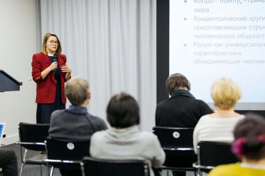 Лекцию «Кант и космополитичный мир», которая прошла в Ельцин Центре 4 февраля в рамках цикла «Политика: скрытые смыслы», прочитала Ольга Башкина – философ и историк идей, аспирантка института философии Лёвенского университета в Бельгии, выпускница Санкт-Петербургского государственного университета и Европейского университета в Санкт-Петербурге.