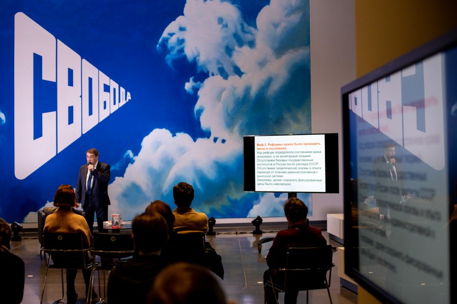 В зале Свободы Музея Бориса Ельцина лекция профессора, доктора экономических наук Андрея Нечаева, занимавшего в 1992–1993 годах пост министра экономики России, открыла 11 февраля серию встреч в рамках проекта «405 дней реформ» с людьми, которые тридцать лет назад создавали новое российское государство и формировали государственные институты.