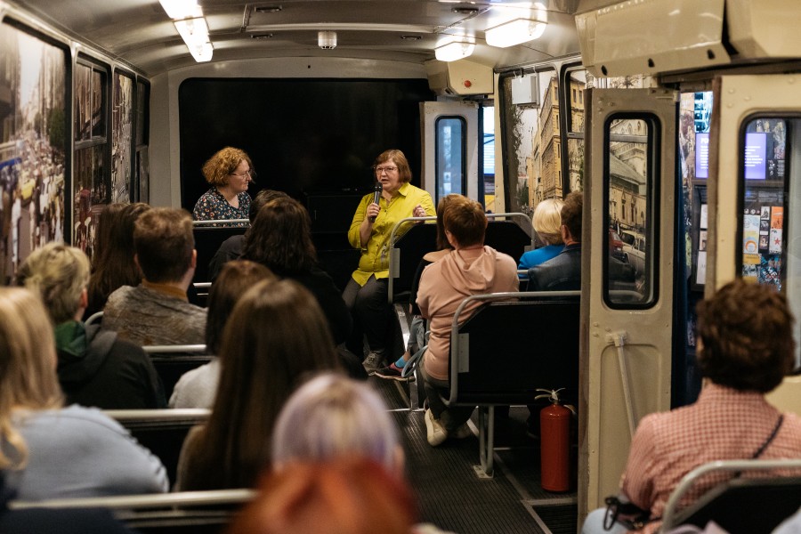 В Ельцин Центре возобновил свою работу клуб «Мои 90-е». Первое после длительного перерыва, связанного с пандемией, заседание клуба, традиционно проходящее в музейном троллейбусе, было посвящено презентации книги журналиста Натальи Паэгле «Жребий».