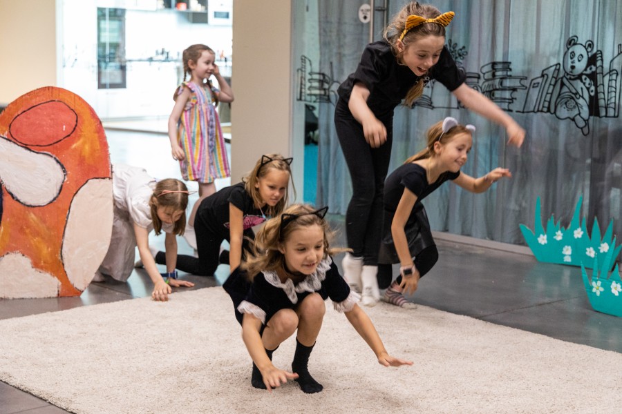 За первый летний месяц в Ельцин Центре незаметно пролетели четыре смены детских городских лагерей, организованные «Детским центром 18–». Одна из смен была посвящена театру. Она так и называлась «Мир — театр». Участие в ней приняли младшие школьники и дошколята (были охвачены дети от 6 до 10 лет). В день завершения смены, 30 июня, ребята показали родителям спектакль, к которому сами написали сценарий, придумали декорации, костюмы, выбрали музыкальное сопровождение и сами же осуществили постановку под руководством театрального педагога.
