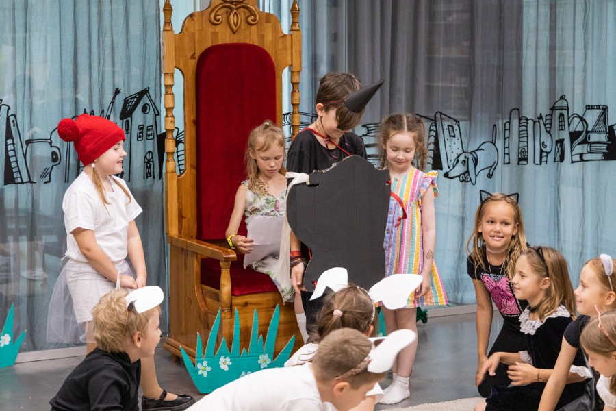 За первый летний месяц в Ельцин Центре незаметно пролетели четыре смены детских городских лагерей, организованные «Детским центром 18–». Одна из смен была посвящена театру. Она так и называлась «Мир — театр». Участие в ней приняли младшие школьники и дошколята (были охвачены дети от 6 до 10 лет). В день завершения смены, 30 июня, ребята показали родителям спектакль, к которому сами написали сценарий, придумали декорации, костюмы, выбрали музыкальное сопровождение и сами же осуществили постановку под руководством театрального педагога.