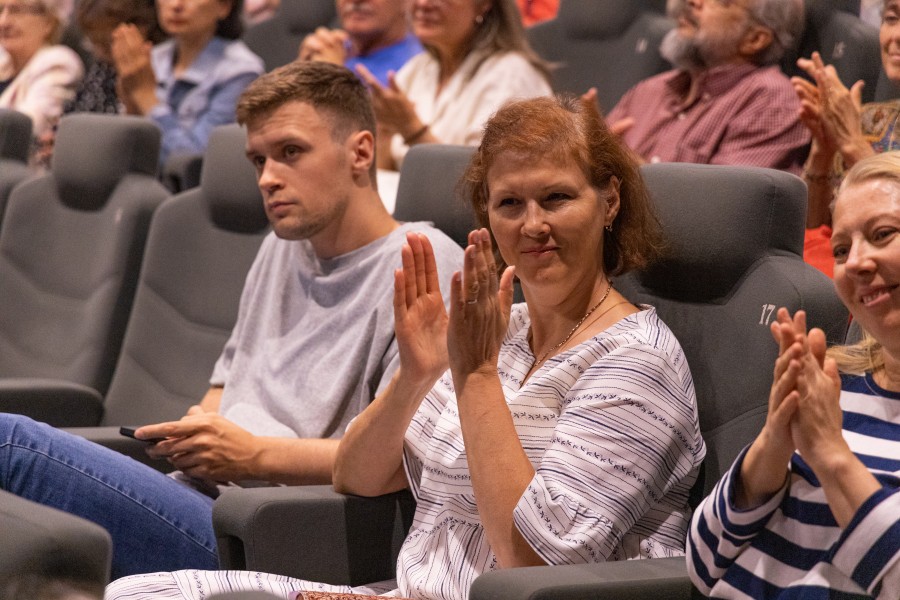 В Ельцин Центре в День города 20 августа состоялся премьерный показ фильма «За нас с вами» и встреча с режиссёром Андреем Смирновым. Представил фильм киновед, писатель, руководитель киноклуба в Ельцин Центре Вячеслав Шмыров. Андрей Сергеевич приехал в Екатеринбург с супругой, продюсером фильма, актрисой Еленой Прудниковой.