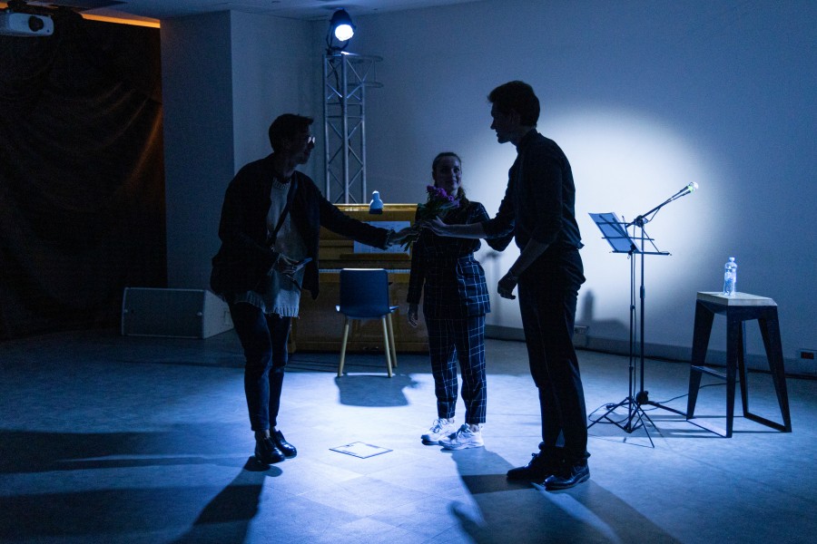 В новом проекте Театральной платформы «Строчка. Точка …» любимые артисты и музыканты исполняют стихи известных и не очень поэтов. 18 сентября в аудитории Театральной платформы «В Центре» состоялась поэтическая читка поэмы Маяковского «Война и мир».