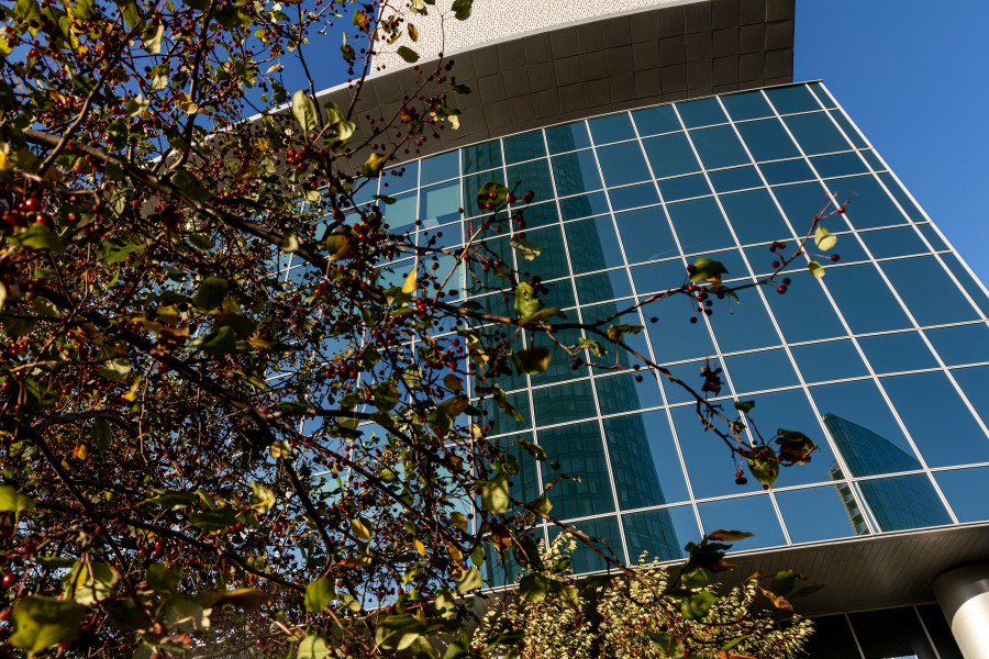 Осенний фасад Ельцин Центра. Осень, боярышник, сентябрь