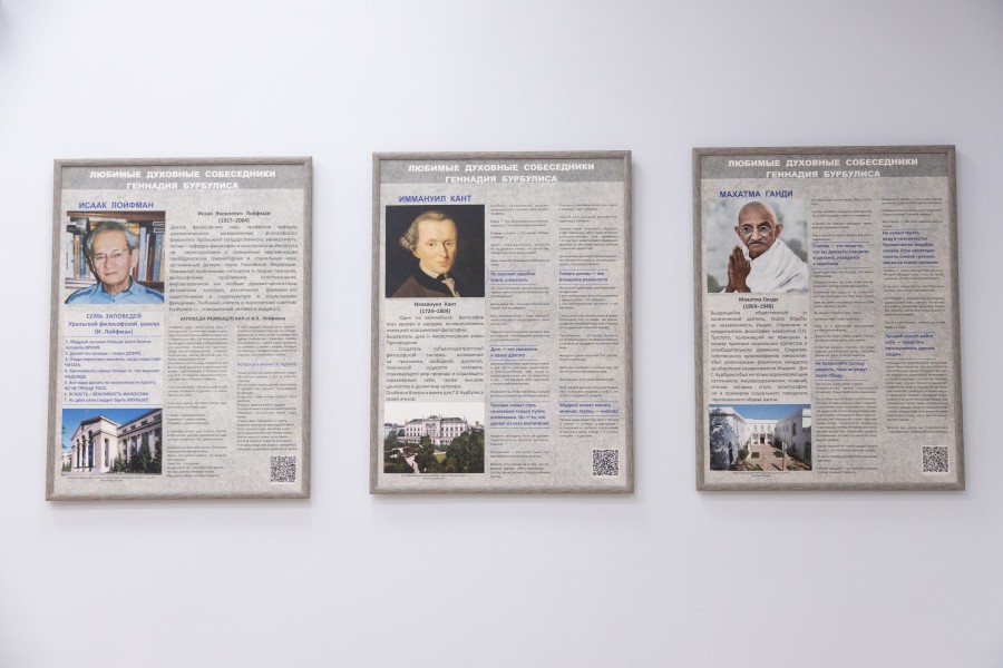 В Уральском федеральном университете, который носит имя Бориса Ельцина, 4 октября была торжественно открыта именная аудитория Геннадия Бурбулиса – выпускника и преподавателя этого высшего учебного заведения, одного из ближайших соратников первого президента России. Вуз увековечил память Бурбулиса, присвоив его имя расположенной в историческом главном корпусе аудитории №325 философского факультета, выпускником которого он был. Памятная табличка возле этой аудитории напоминает, что экс-госсекретарь РСФСР, первый вице-премьер Правительства реформ и основатель Школы политософии «Достоинство» Геннадий Бурбулис имел учёную степень кандидата наук, работал на кафедре философии Уральского политехнического института в 1974–1983 годах. Фото: Любовь Кабалинова