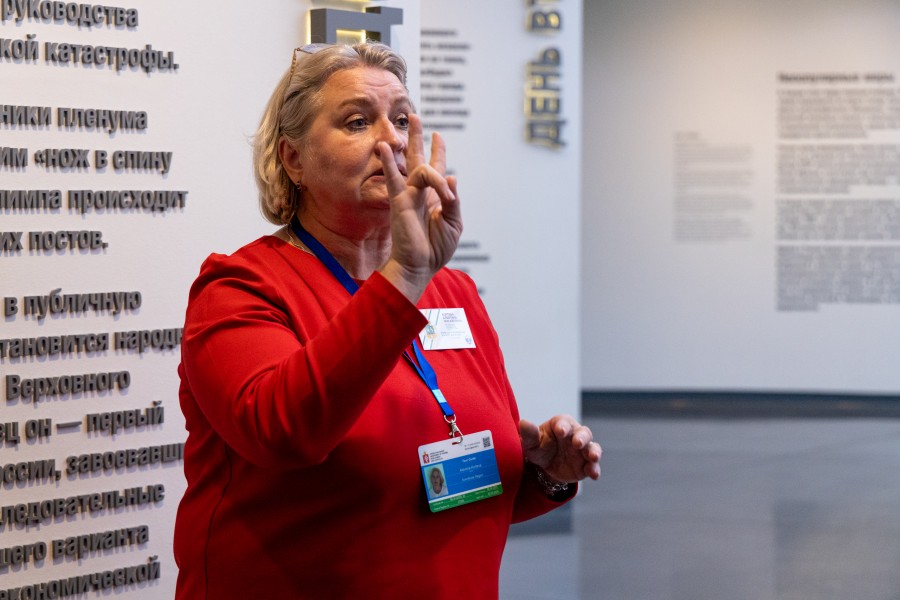 Ельцин Центр не первый год поддерживает Международную неделю глухих, которая проходит в последние дни сентября. Так, 24 сентября в рамках программы «Дня глухих в Ельцин Центре» прошла встреча «Зримые голоса: лекция о жестовом языке». А 6 октября состоялась конференция Ассоциации глухих и слабослышащих экскурсоводов, гидов и гидов-переводчиков (АГИСЭГГП). В программу также вошли мастер-классы по телесно-ориентированным практикам для глухих и слабослышащих людей с переводом на русский жестовый язык (РЖЯ).