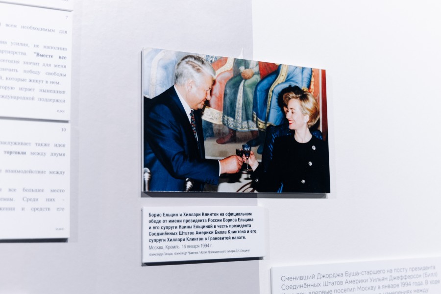 В холле кинозала Ельцин Центра в праздничный день 8 марта открылась уникальная выставка «Кремлёвская кухня», на которой представлены не только меню и другие документы, касающиеся этикета и протокола из Архива Президентского центра, но также и посуда для приёмов из коллекции Музея Бориса Ельцина и его семьи.