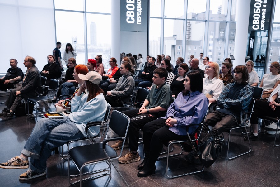 В читальной гостиной Музея Бориса Ельцина стартовал книжный клуб «Суета вокруг дивана». 27 апреля его заседание провела Елена Козьмина, профессор кафедры издательского дела УрФУ им. Б.Н. Ельцина, доктор филологических наук и страстный читатель. Желающих поговорить о рассказе Кира Булычёва «Можно попросить Нину?» было так много, что заседание книжного клуба перенесли в зал Свободы.