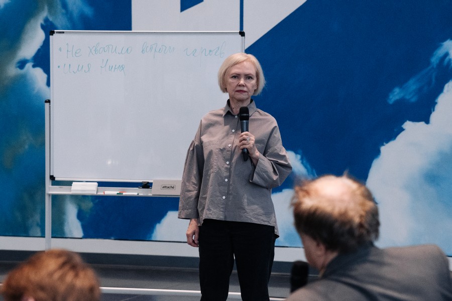 В читальной гостиной Музея Бориса Ельцина стартовал книжный клуб «Суета вокруг дивана». 27 апреля его заседание провела Елена Козьмина, профессор кафедры издательского дела УрФУ им. Б.Н. Ельцина, доктор филологических наук и страстный читатель. Желающих поговорить о рассказе Кира Булычёва «Можно попросить Нину?» было так много, что заседание книжного клуба перенесли в зал Свободы.