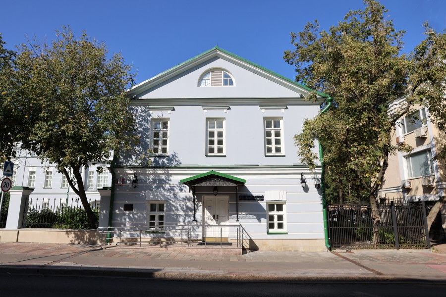 Московский филиал Ельцин Центра располагается в исторической усадьбе Долгоруковых-Бобринских, реставрация которой началась 15 лет назад. Сегодня здесь все еще идет ремонт, но, как только, он будут закончен, главное здание усадьбы станет доступно для организованных экскурсий. Пока же для посетителей открыт только Восточный флигель усадьбы. На первом этаже флигеля размещается книжный магазин «Пиотровский». ( Московский филиал Ельцин Центра, фасад)