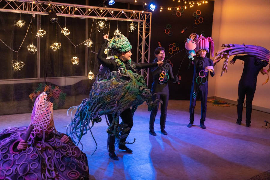 Театральная платформа «В Центре» 20 декабря представила детям и родителям новогодний спектакль «Про китёнка и котёнка» – вполне современную историю о том, как важно иметь друзей и быть кому-то нужным в этом большом мире. Сказочную историю об одном очень чувствительном китёнке, который постоянно на всех обижался, пока не обрёл друзей, придумал драматург Сергей Ермолин. Поставил спектакль и сыграл одного из героев режиссёр Александр Вахов. Удивительные космические костюмы сочных флуоресцентных цветов, достойные модных подиумов, придумали и воплотили в жизнь Сергей Ермолин и Светлана Баженова (драматург, режиссёр, лауреат конкурса пьес о 90-х «Зачем я это помню»).