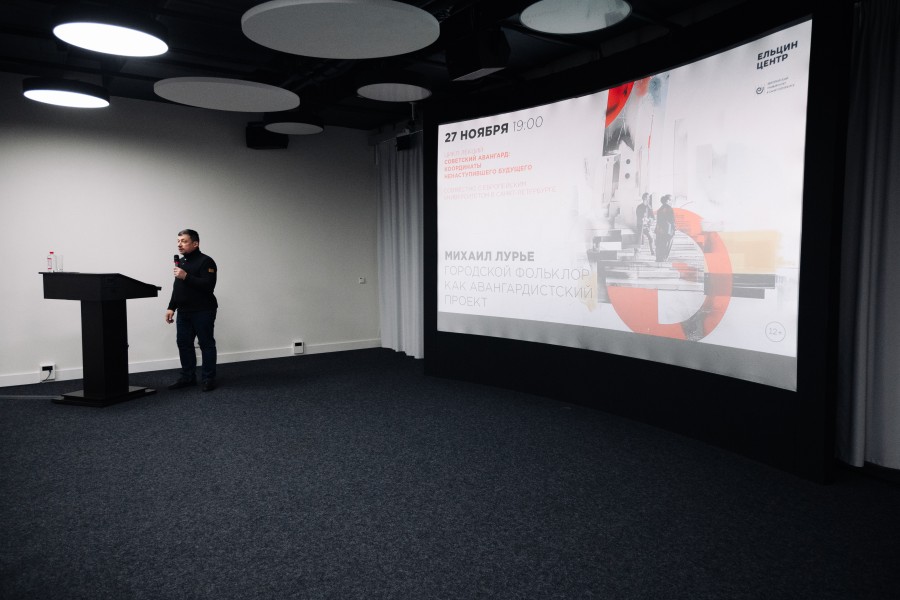 О том, как устная культура города перекликалась с идеями авангарда, рассказал в Ельцин Центре 27 ноября Михаил Лурье — кандидат искусствоведения, доцент факультета антропологии ЕУСПб. Его лекция стала пятой в цикле «Советский авангард: координаты ненаступившего будущего», совместной с Европейским университетом Санкт-Петербурга.