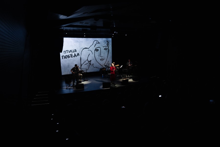В Ельцин Центре в Екатеринбурге 3 августа выступила арт-рок-группа МАNДРАГОРА, лидером и основателем которой является актриса театра и кино Юлия Пересильд. Концерт-перфоманс «Птица-Победа», посвящённый 80-летию Победы в Великой Отечественной войне собрал полный аншлаг в воскресный вечер. В него вошли песни военных лет, композиции «на тему» в авторских аранжировках, цитаты из дневников и фронтовых писем, пронизанные уважением к исторической памяти народа-победителя.