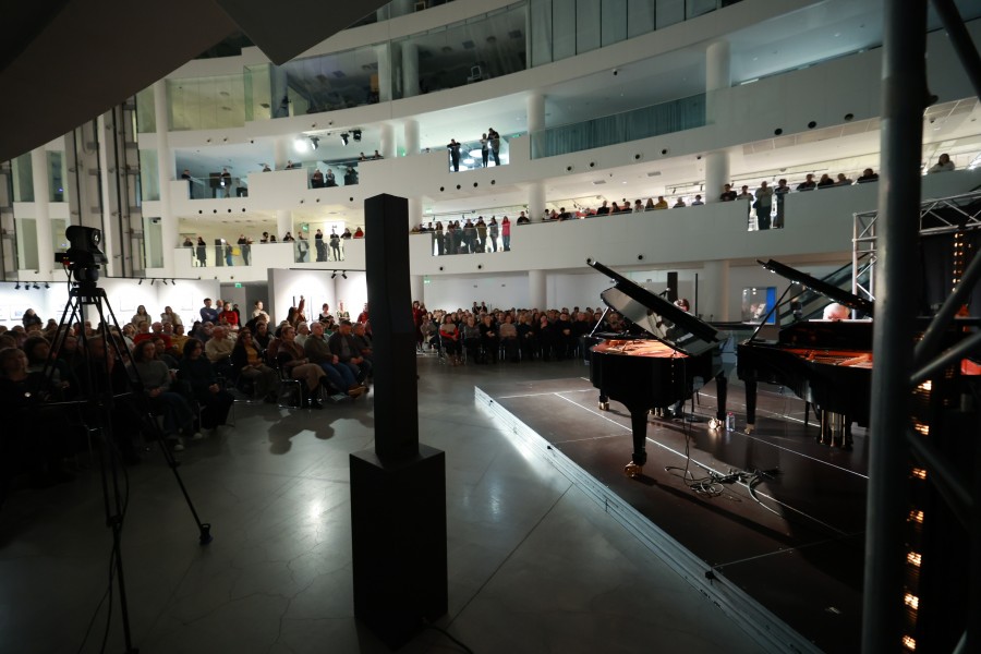 Завершил юбилейную программу концерт фортепианного дуэта Алексея Гориболя и Ярослава Коваленко «Укрощение огня. Музыка для двух фортепиано». Сцена стала естественным продолжением выставки «Два президента», как и концертная программа, в которую вошли знаковые произведения советских и российских композиторов, ставших классиками ХХ века.
