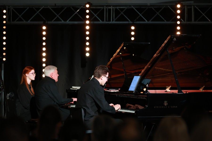 Завершил юбилейную программу концерт фортепианного дуэта Алексея Гориболя и Ярослава Коваленко «Укрощение огня. Музыка для двух фортепиано». Сцена стала естественным продолжением выставки «Два президента», как и концертная программа, в которую вошли знаковые произведения советских и российских композиторов, ставших классиками ХХ века.