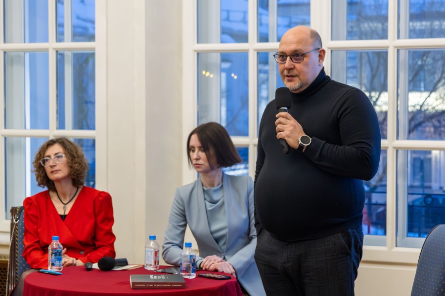 В московском филиале Ельцин Центра 28 февраля прошла презентация книги-альманаха «Служитель утопии. Теодор Курентзис». Издание – уникальное, как и сам протагонист – крупнейшая музыкальная фигура современности. Теодор – дирижёр, музыкант, руководитель театров оперы и балета, создатель музыкальных коллективов, поэт. В книге тщательно и с любовью собраны статьи, интервью, рецензии, посвящённые личности и творчеству маэстро. Вела презентацию, представляя книгу, инициатор проекта, музыковед, органистка, профессор Евгения Кривицкая. Ей помогали, ассистировали музыковед Юлия Чечикова, а также трубач, директор оркестра musicAeterna Павел Курдаков, прошедший с оркестром и Теодором весь путь.