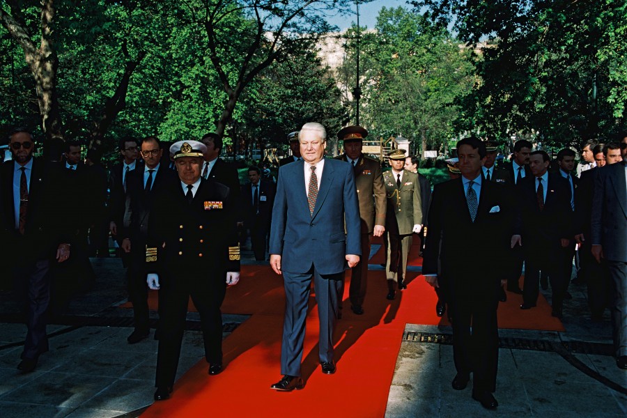 Испания. Мадрид/Барселона. 12-14 апреля 1994 г. Визит президента РФ Бориса Ельцина в Испанию. Среди присутствующих министр обороны РФ Павел Грачев. Фото Дмитрия Соколова