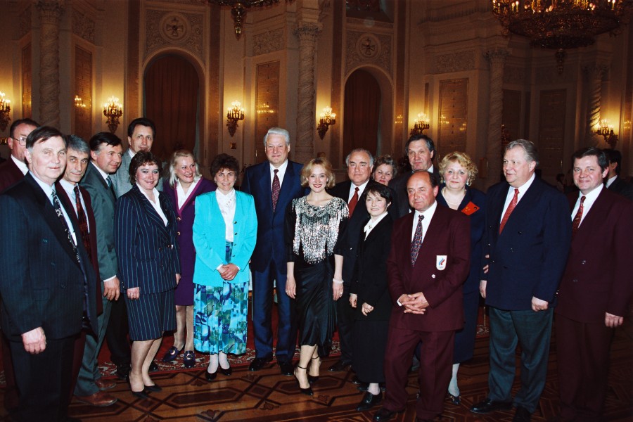 Россия. Москва. Большой Кремлевский Дворец. 25 апреля 1994 г. Встреча президента РФ Бориса Ельцина с членами российской делегации XVII зимних Олимпийских игры в Лиллехаммере (Норвегия). Фото Дмитрий Соколов