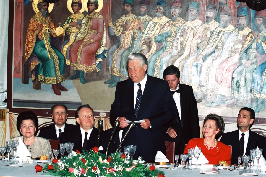 Россия. Москва. 18-19 мая 1994 г. Супруга президента РФ Наина Ельцина, президент Финляндии Мартти Ахтисаари, президент РФ Борис Ельцин, супруга президента Финляндии Ээва Хювяринен. Фото Дмитрий Соколов