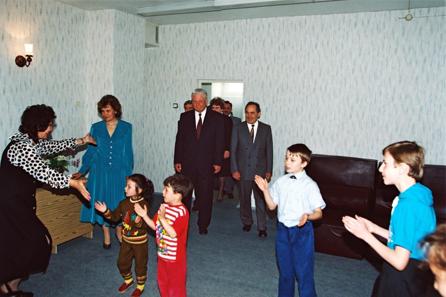 Татарстан. Казань. 30 мая 1994 г. Президент РФ Борис Ельцин и президент Татарстана Минтимер Шаймиев во время посещения детского социально-реабилитационного центра для детей-инвалидов. Фото Дмитрий Соколов