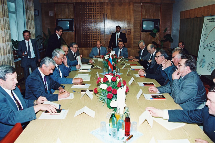 Россия. Московская область. 29 июня 1994 г. Посещение президентом РФ Борисом Ельциным ФЦДТ "Союз". Среди присутствующих помощник президента РФ Георгий Сатаров, руководитель Службы протокола Администрации Президента РФ Владимир Шевченко. Фото Дмитрий Соколов