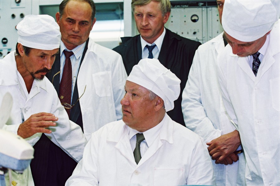 Россия. Красноярск. 27-29 июля 1994 г. Президент РФ Борис Ельцин во время посещения действующего реактора по переработке плутония. Фото Дмитрий Соколов