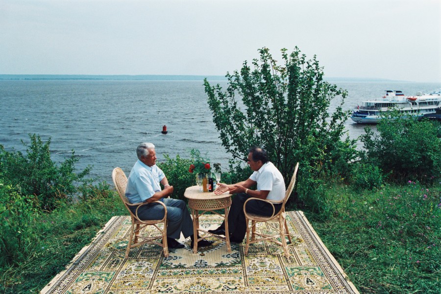 Татарстан. Круиз по р. Волге, теплоход "Россия". 11-30 августа 1994 г. Президент РФ Борис Ельцин и президент Татарстана Минтимер Шаймиев. В ходе поездки были посещены г. Плес Ивановской области, г. Нижний Новгород, г. Тольятти, г. Волжск (показательные полеты военной авиации), г. Ростов-на-Дону и г. Сочи резиденция "Бочаров ручей". Фото Дмитрий Соколов