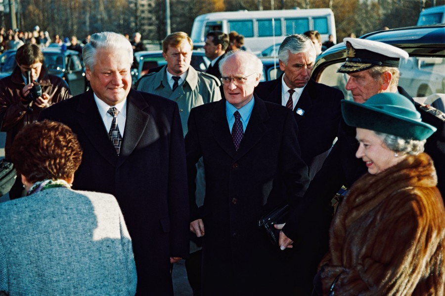 Россия. Санкт-Петербург. 20 октября 1994 г. Супруга президента РФ Наина Ельцина, президент РФ Борис Ельцин, супруг королевы Англии принц Филипп, королева Англии Елизавета II и президент России Борис Ельцин. Фото Дмитрий Соколов