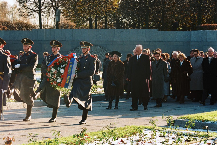 Россия. Санкт-Петербург. 20 октября 1994 г. Королева Англии Елизавета II и президент РФ Борис Ельцин во время возложения венков на Пискаревском мемориальном кладбище. Фото Дмитрий Соколов