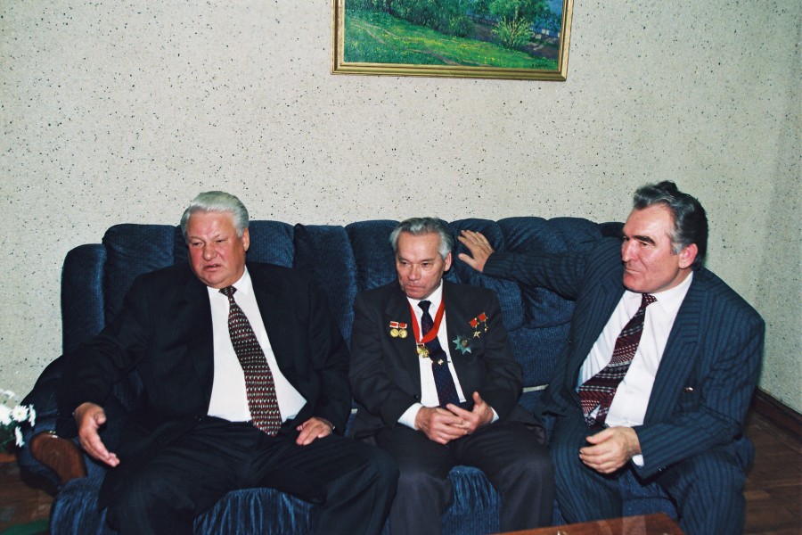 Поездка президента РФ Б.Н. Ельцина в Удмуртию для участия в праздновании 75-летия конструктора стрелкового оружия Михаила Калашникова