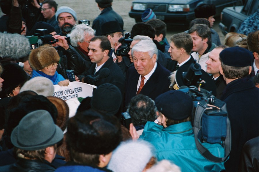 Россия. Псковская область. 23 ноября 1994 г. Рабочая поездка президента РФ Бориса Ельцина в Псковскую область. Среди присутствующих губернатор Псковской области Владислав Толубеев. Фото Дмитрий Соколов