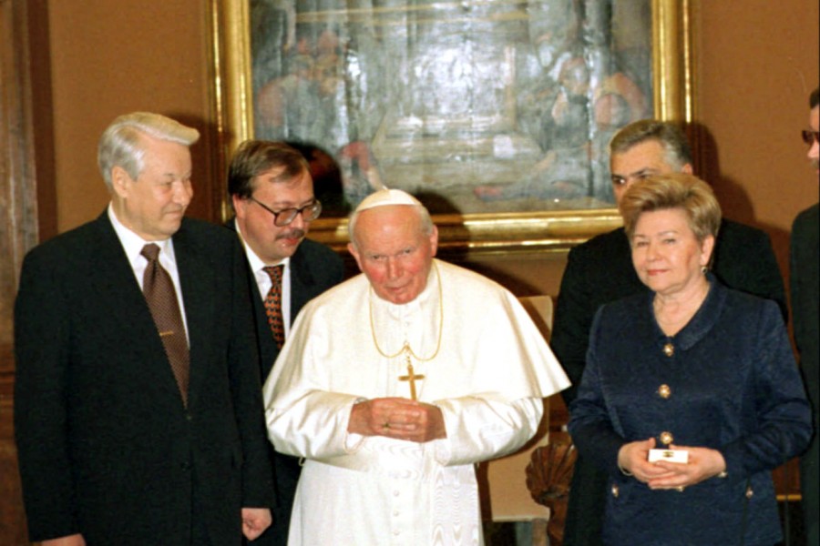 Борис Ельцин и Наина Ельцина с Папой Римским Иоанном Павлом II в Ватикане (1998)