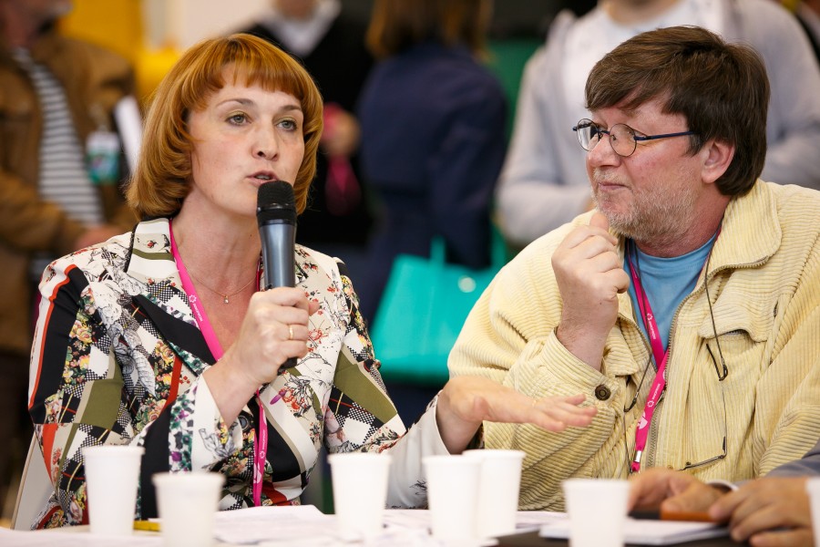 Елена Матвеева – глава городского округа Нижняя Салда и Евгений Касимов, депутат законодательного собрания Свердловской области. Президентский центр Б.Н. Ельцина на международной промышленной выставке ИННОПРОМ 2015 в Екатеринбурге