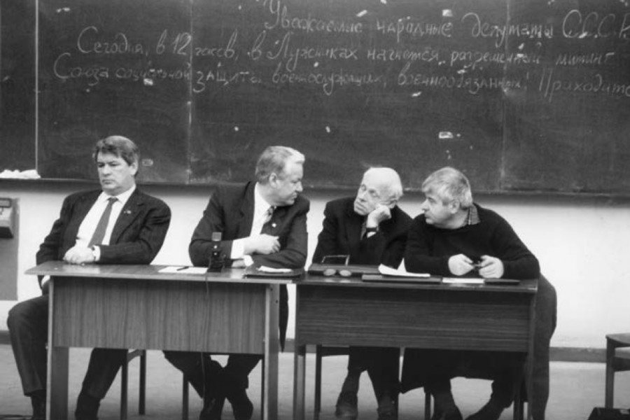 Сопредседатели Межрегиональной депутатской группы (МДГ) – Юрий Афанасьев, Борис Ельцин, Андрей Сахаров, Гавриил Попов. 1989 год