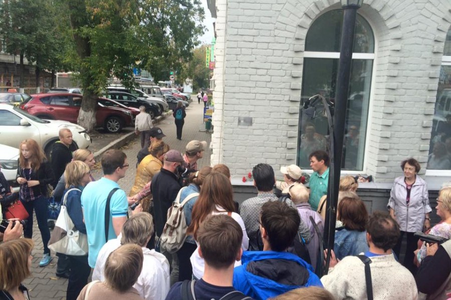 Установка таблички с "Последним адресом" Георгия Васильевича Хрипунова на доме по ул. Пушкина, 15
