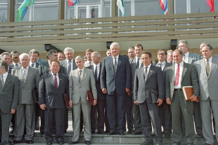 Карелия. Петрозаводск. Президент РФ Борис Ельцин (в центре) и руководители делегаций после заседания Совета глав республик.